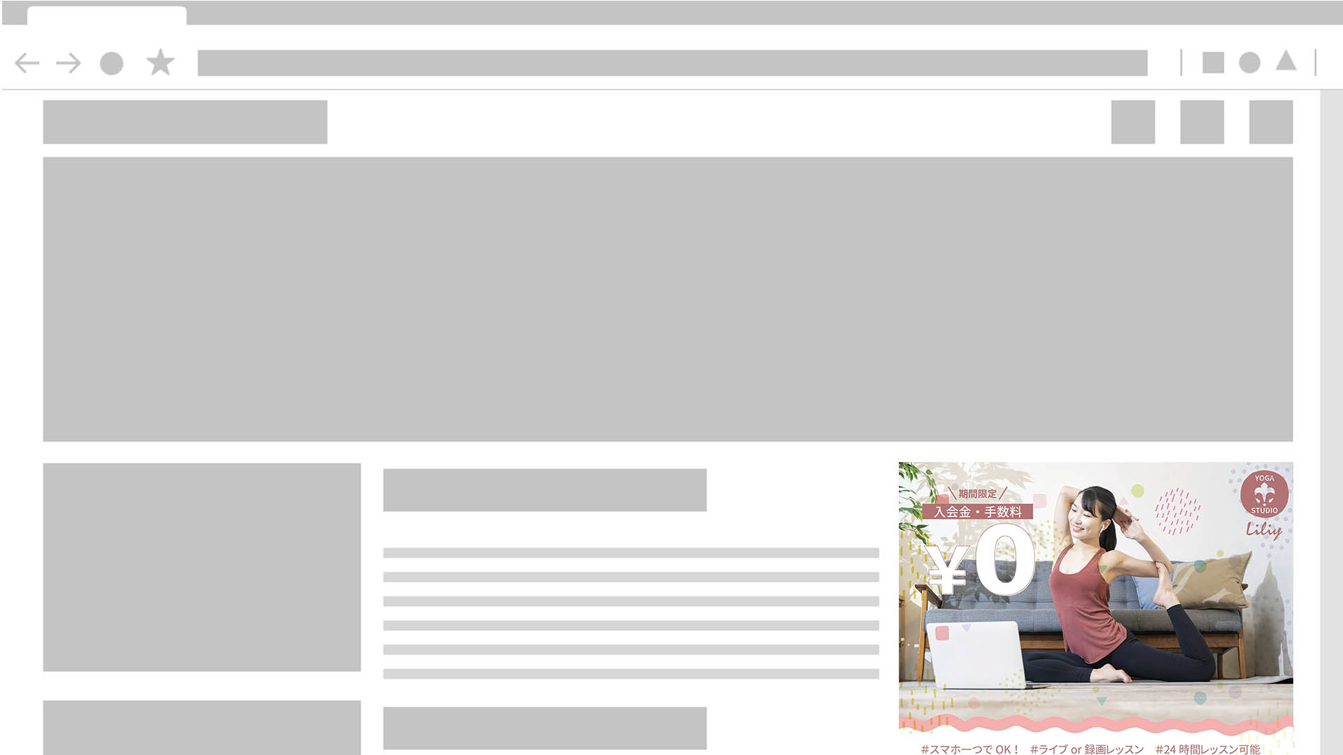 Fictitious banner WEB 2021.11.082023.05.07 ヨガスタジオ「Liliy」架空バナー制作 パターン:A パターン:B 使用ツール AdobePhotoshopAdobeIllustrator