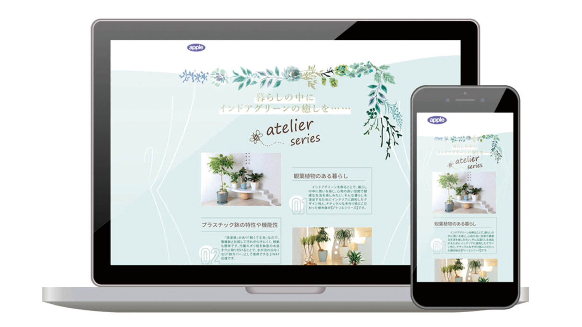 LP design WEB 2021.11.082023.05.07 アップルウェアー株式会社:アトリエシリーズLP制作 使用ツール AdobePhotoshopAdobeIllustratorVSCodeCyberduck 担当箇所 画像処理デザイン・レイアウトコーディング